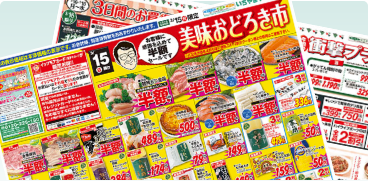 最新のチラシをご覧いただけます。チラシには全店共通と、エリアごとのものがあります。