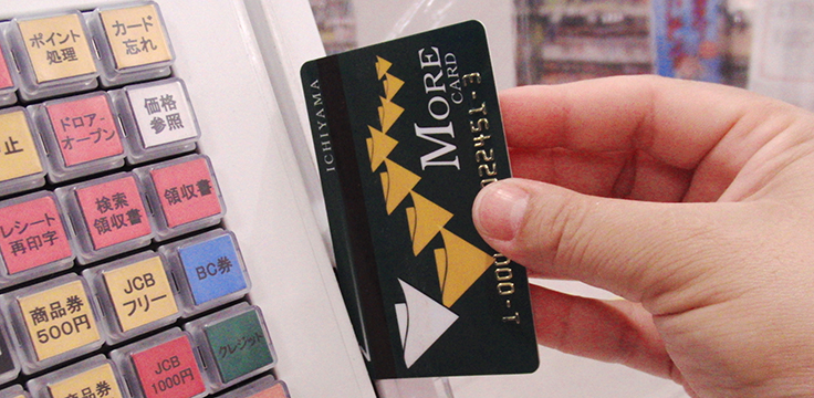 お買い物でポイントがたまり、集まるとサービス券と交換できる「モアカード」についてご案内します。