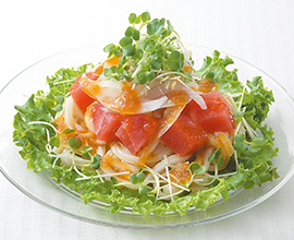 まぐろとスライス玉ねぎのサラダうどん